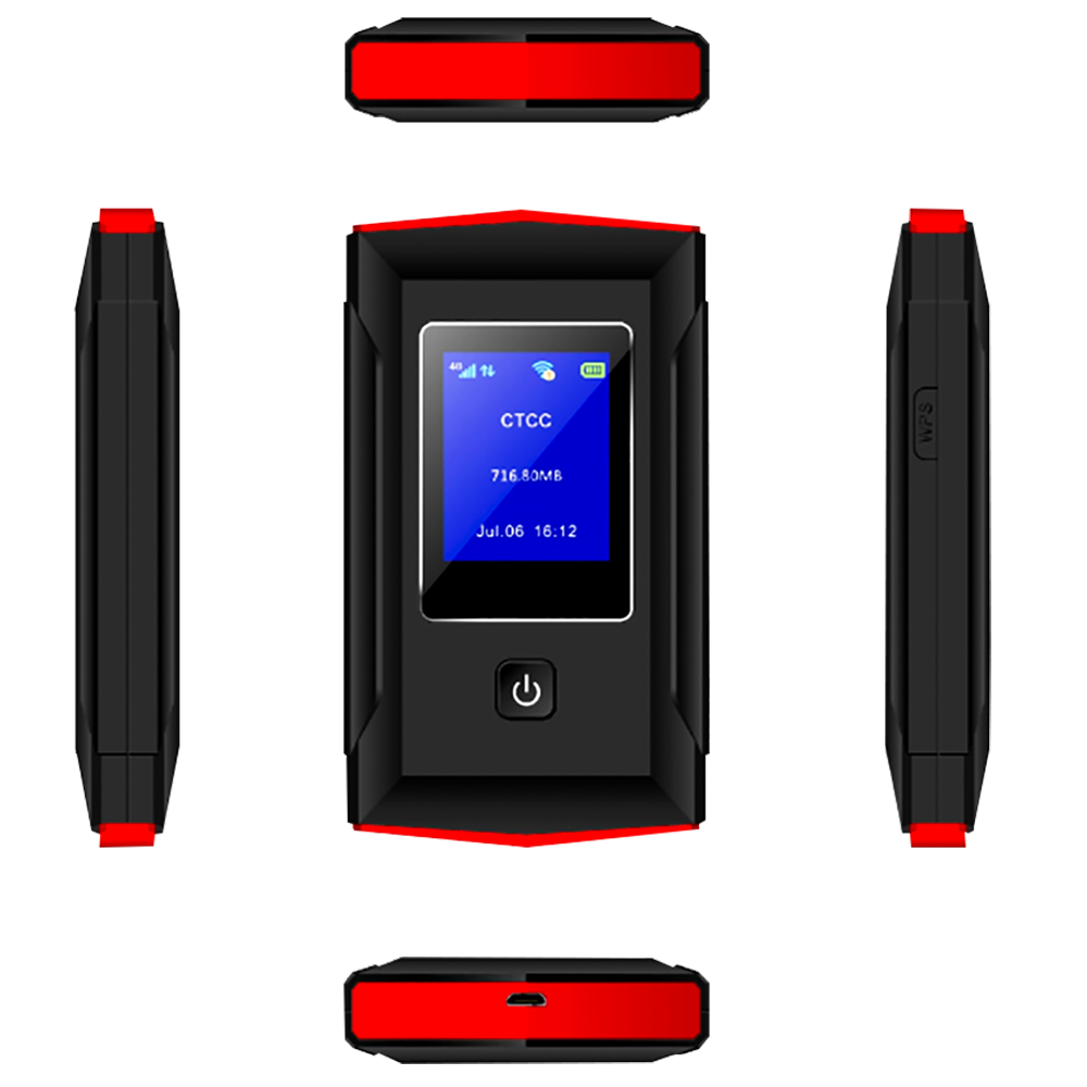 Visonicom V4G933M is Wireless 11AC 1200M LTE Cat 6 MiFi router with Carrier Aggregation 4G mobile router modem of Qualcomm LTE chip, with LCD color screen and backlight, built-in 4G LTE module SIM card slot and battery. It universally supports both FDD and TDD duplex modes and multiple frequency bands:
